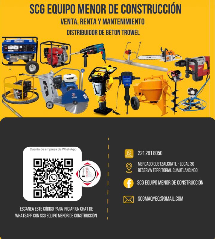 En SCG Equipo y Maquinaria, comprendemos la importancia de contar con el equipo adecuado para cada fase de tu proyecto.Ofrecemos un extenso inventario para la venta y renta de maquinaria de construcción, que incluye desde equipos ligeros hasta maquinaria pesada. Nuestro compromiso es proporcionar soluciones flexibles y económicas, permitiéndote acceder a herramientas de alto rendimiento y calidad sin la necesidad de una inversión inicial completa. Ya sea que necesites un equipo específico para un trabajo puntual o estés buscando expandir tu flota, en SCG encontrarás la opción ideal.